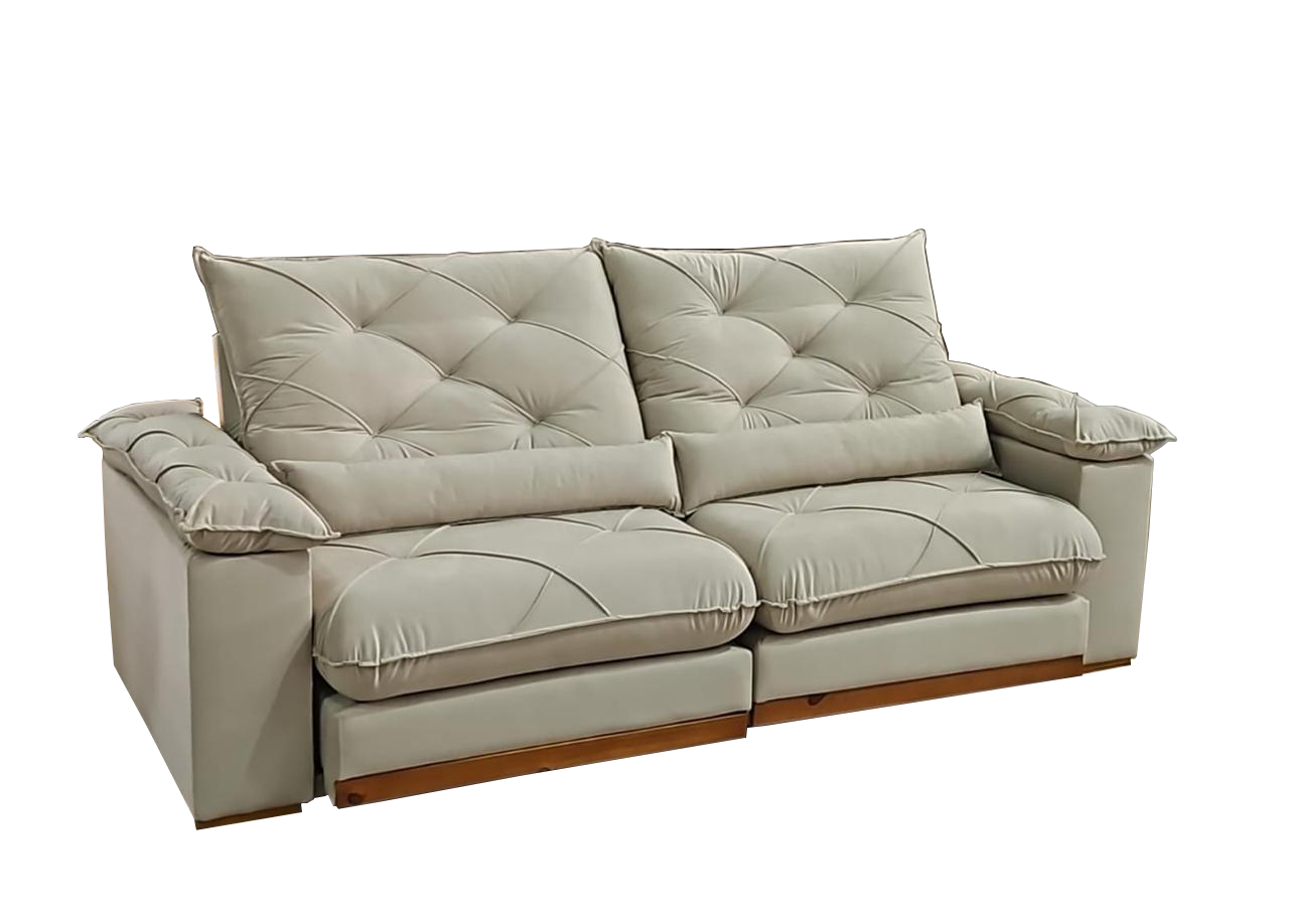 Sofá Retrátil e Reclinável Gran Paladium (Pillow) 2,50 m Veludo Bege – IMPÉRIO DECOR