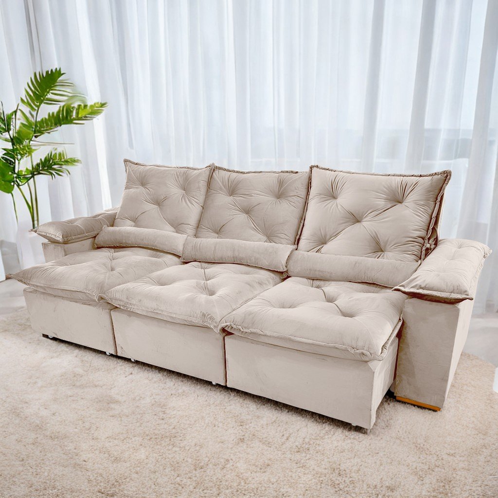 Sofá Retrátil e Reclinável Grécia 2,70 m Bege – QUINE ESTOFADOS