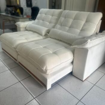 Sofá Retrátil e Reclinável Hércules 2,50 m Veludo Marfim – VICAM ESTOFADOS