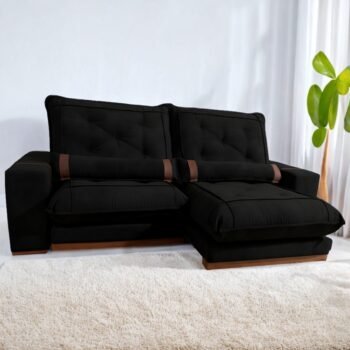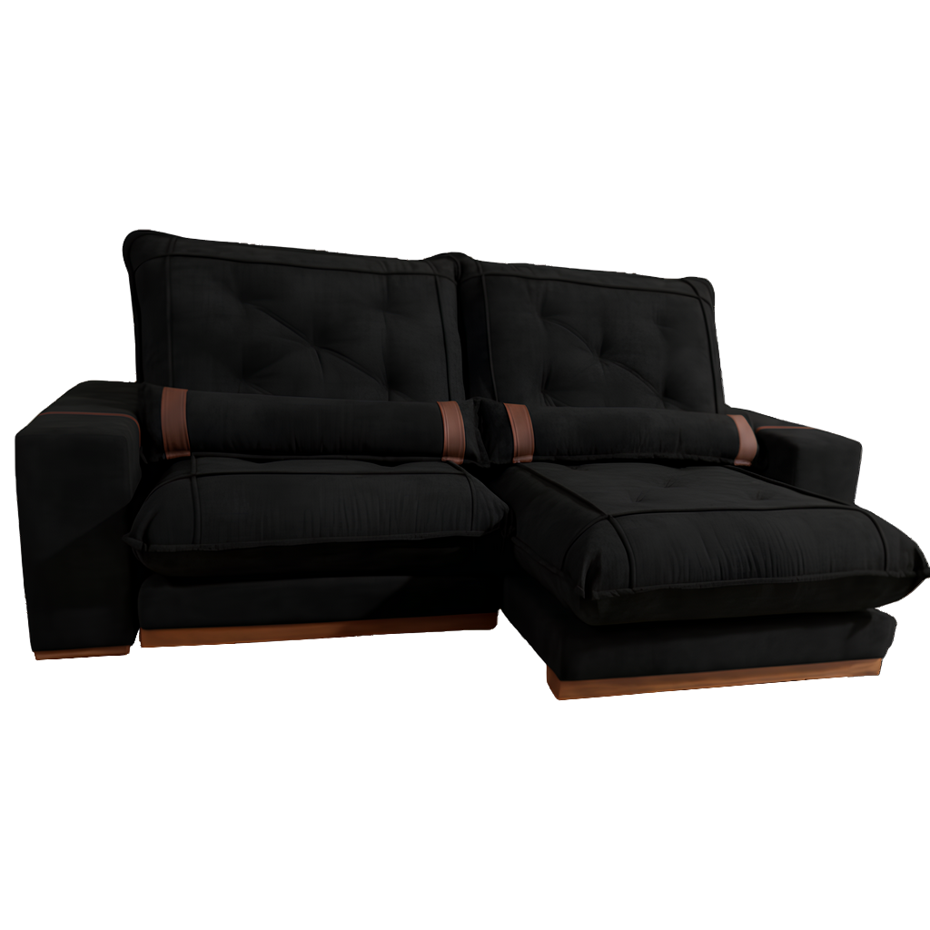 Sofá Retrátil e Reclinável Ibiza/Poseidon 2,50 m Veludo Preto 111 – ZARAT ESTOFADOS
