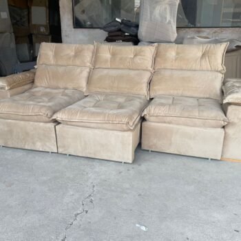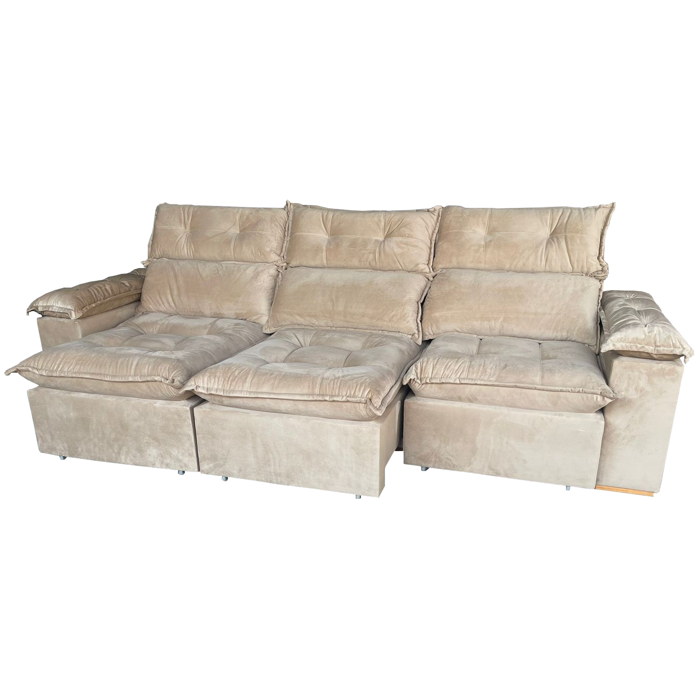 Sofá Retrátil e Reclinável Imperial 2,75 m Veludo Jolie Bege 03 – IMPERIAL DECOR