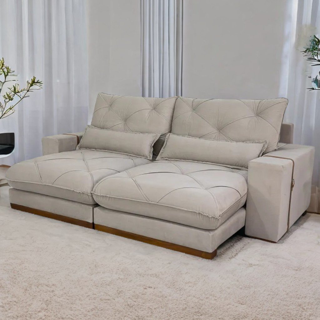 Sofá Retrátil e Reclinável Luanda/Isabella/Barcelona 2,50 m Veludo Bege – TREVO ESTOFADOS