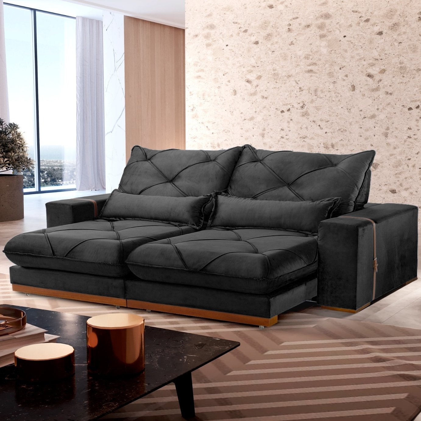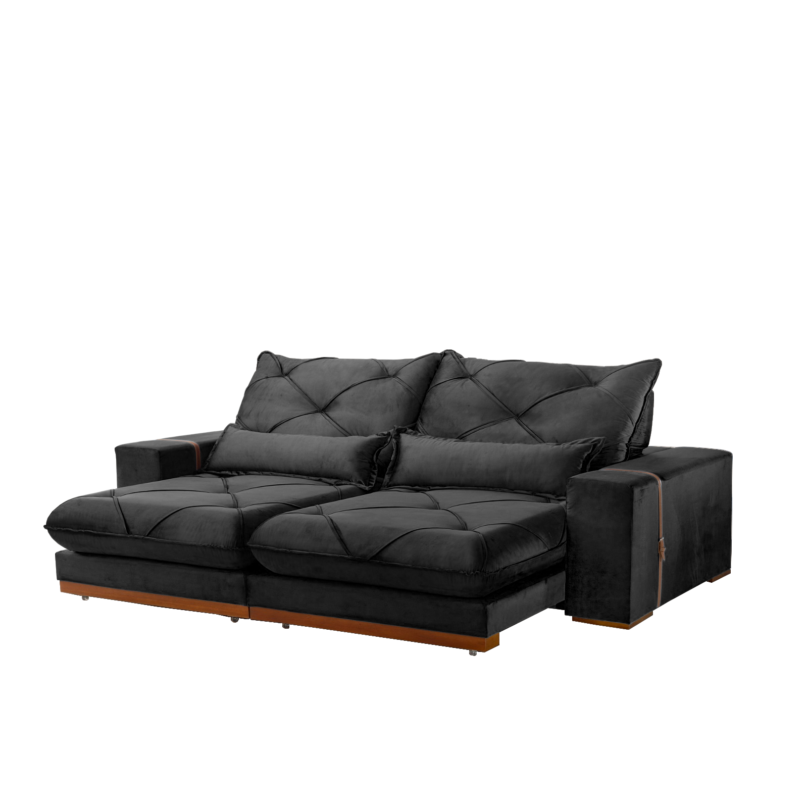 Sofá Retrátil e Reclinável Luanda/Isabella/Barcelona 2,50 m Veludo Preto 013 – TREVO ESTOFADOS