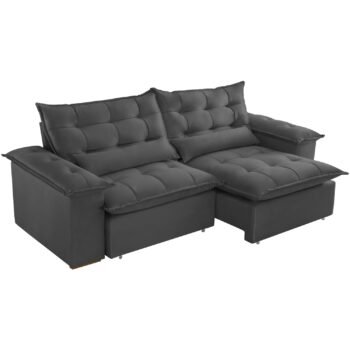 Sofá Retrátil e Reclinável Niger 2,50 m Veludo Cinza B010 – TREVO ESTOFADOS