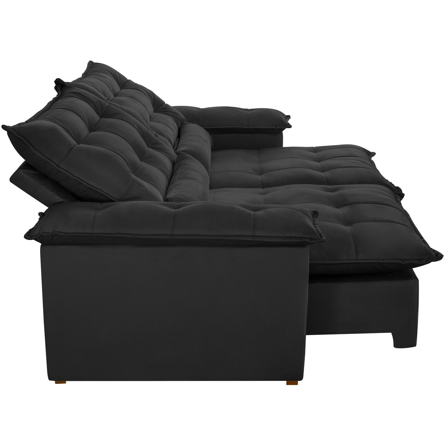 Sofá Retrátil e Reclinável Niger 2,50 m Veludo Preto B013 – TREVO ESTOFADOS