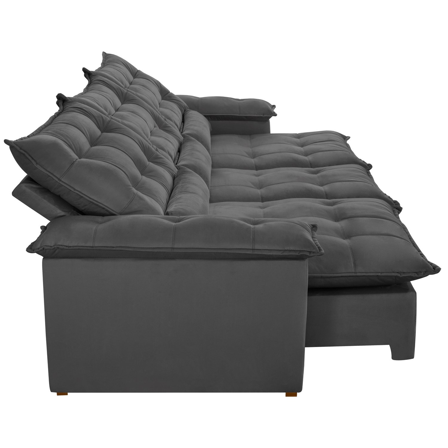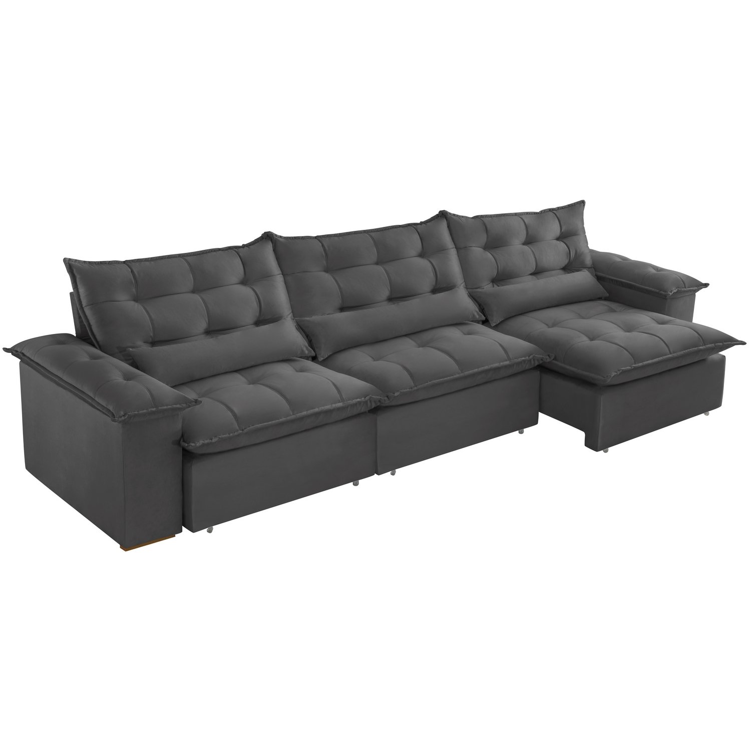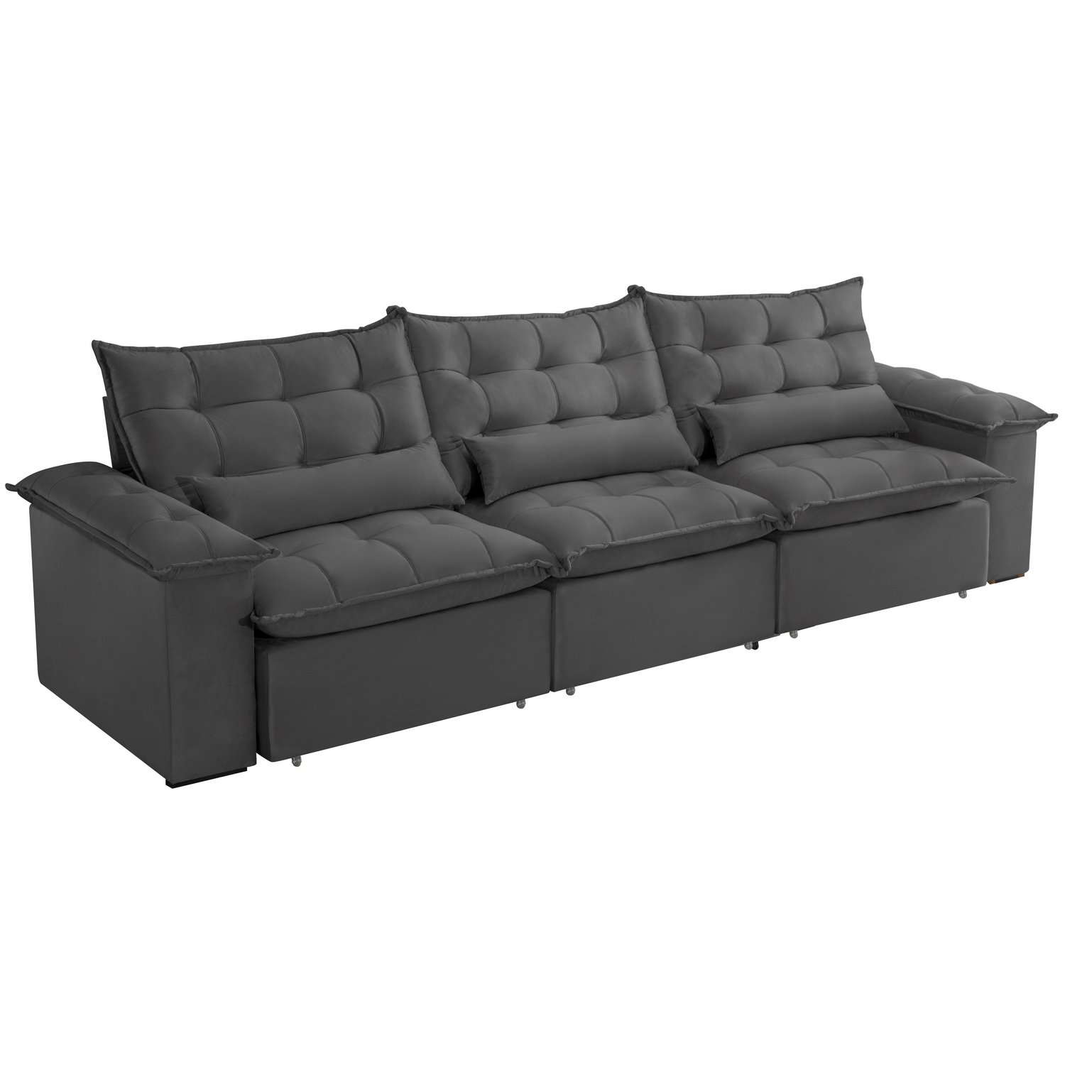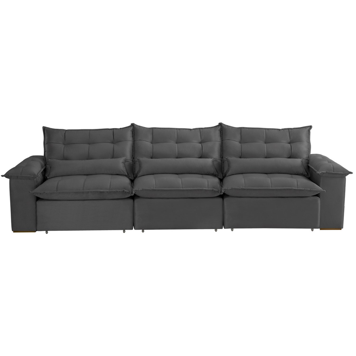 Sofá Retrátil e Reclinável Niger 3,10 m Veludo Cinza B010 – TREVO ESTOFADOS