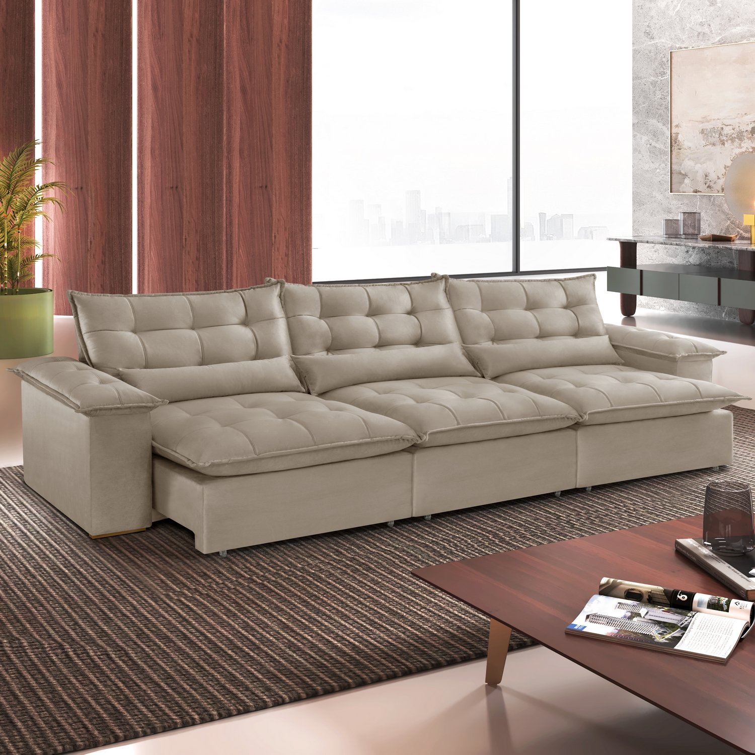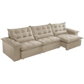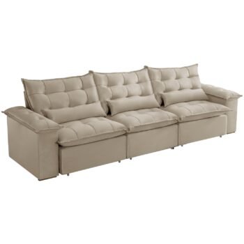 Sofá Retrátil e Reclinável Niger 3,10 m Veludo Marfim B015 – TREVO ESTOFADOS