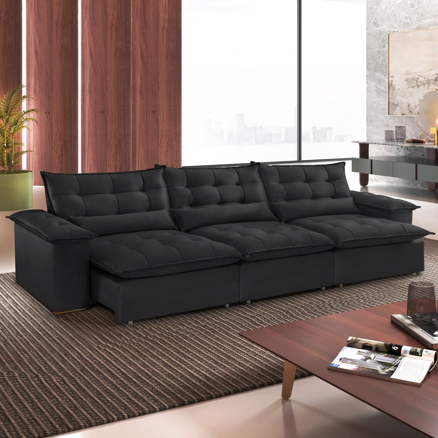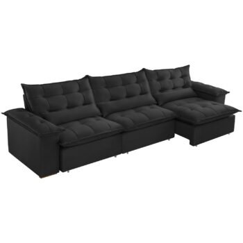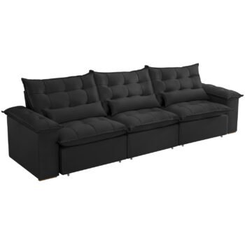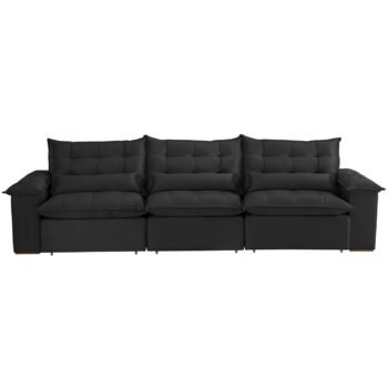Sofá Retrátil e Reclinável Niger 3,10 m Veludo Preto B013 – TREVO ESTOFADOS
