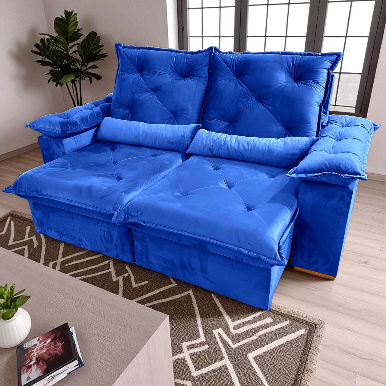 Sofá Retrátil e Reclinável Porto Madero 2,00 m Veludo Azul – IMPERIAL DECOR