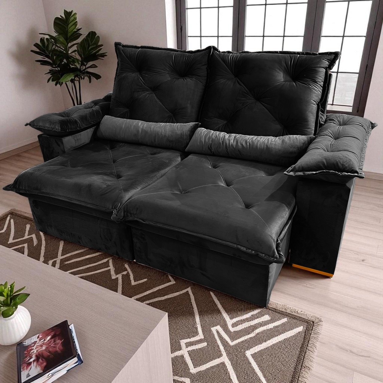 Sofá Retrátil e Reclinável Porto Madero 2,00 m Veludo Preto – IMPERIAL DECOR