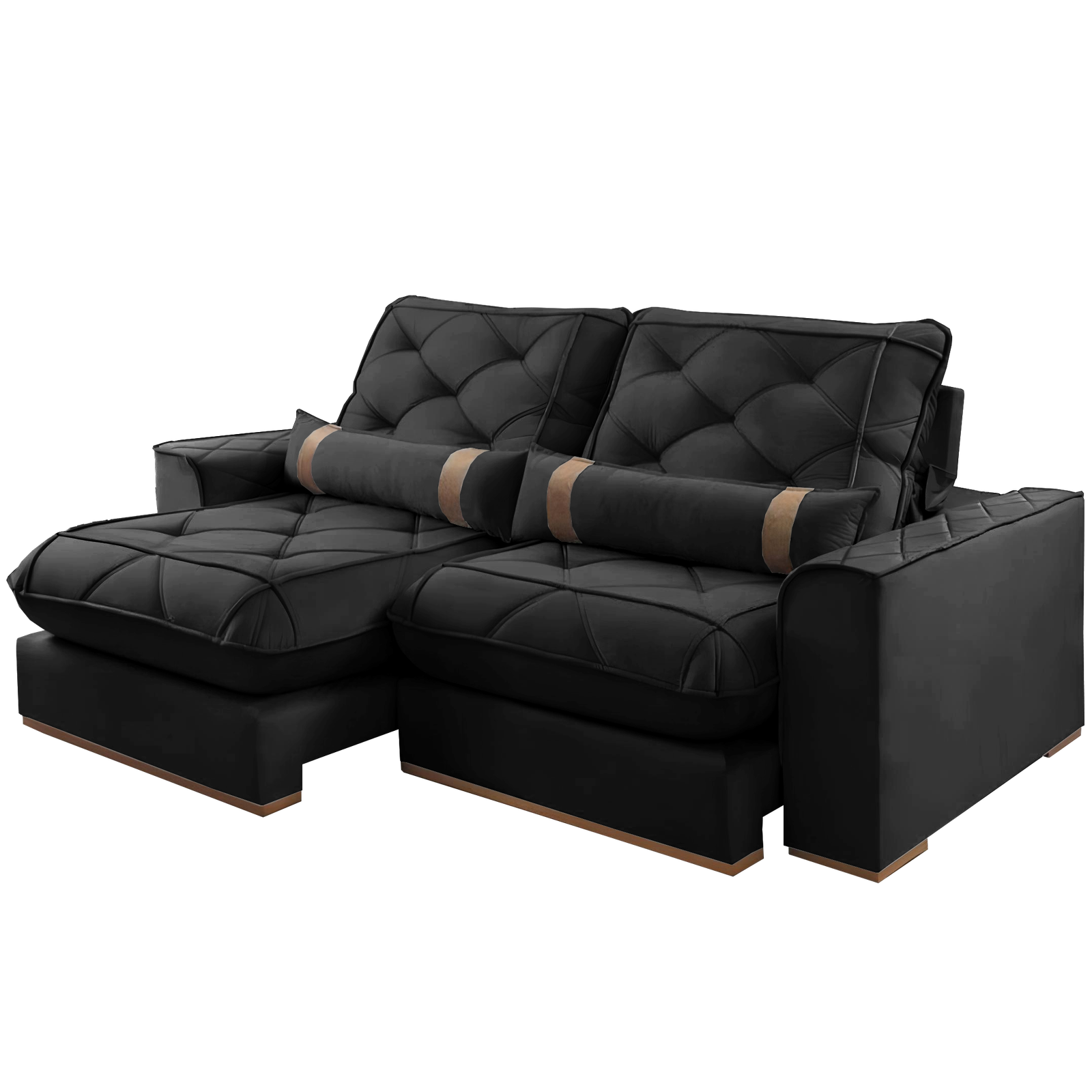 Sofá Retrátil e Reclinável Poseidon 029 2,50 m Veludo Preto – VICAM ESTOFADOS
