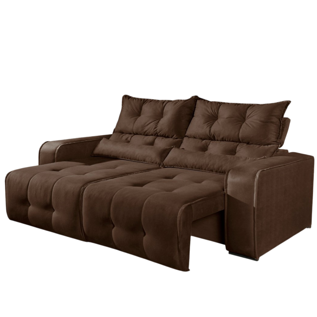 Sofá Retrátil e Reclinável Premier 2,00 m Veludo Marrom – DECORAR ESTOFADOS