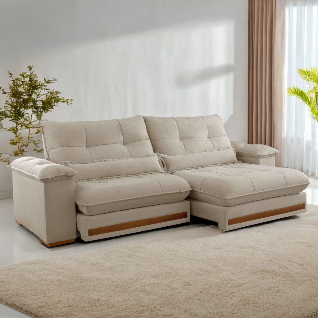 Sofá Retrátil e Reclinável Qatar 2,50 m Veludo Marfim B015 – TREVO ESTOFADOS