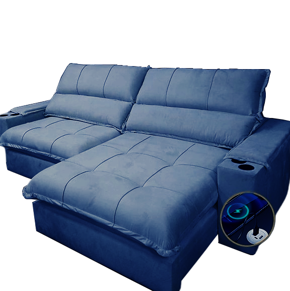 Sofá Retrátil e Reclinável Zeus 2,30 m Azul – ZARAT ESTOFADOS