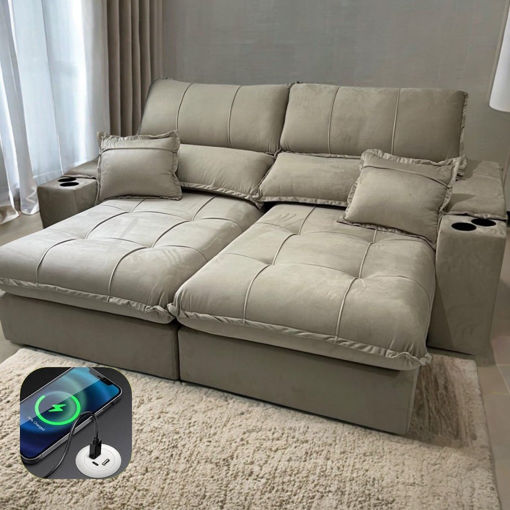 Sofá Retrátil e Reclinável Zeus 2,50 m Bege – ZARAT ESTOFADOS