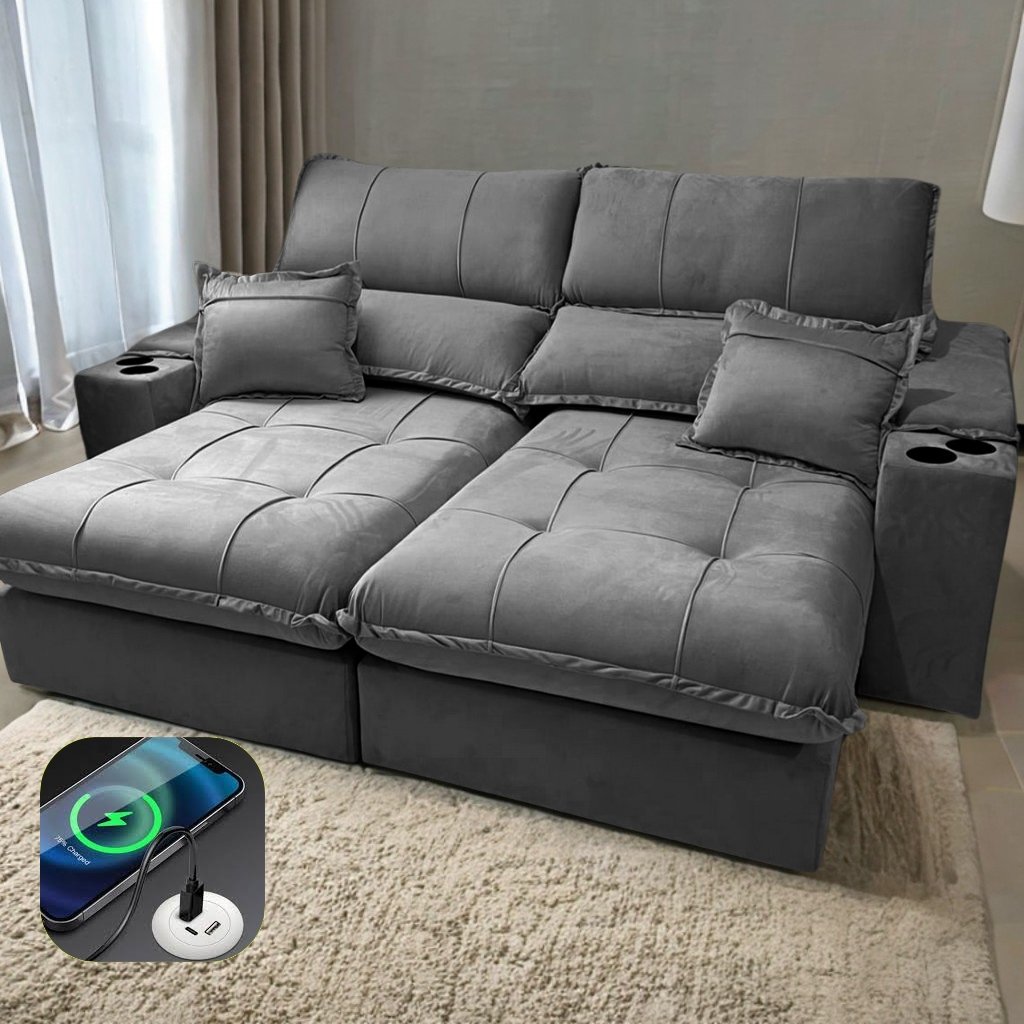 Sofá Retrátil e Reclinável Zeus 2,50 m Cinza – ZARAT ESTOFADOS