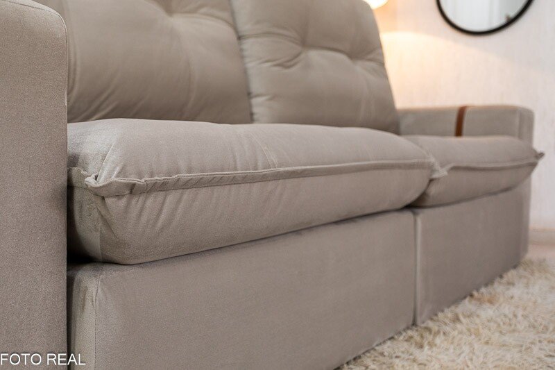 Atenção: Informamos que é normal haver uma abertura entre os módulos dos sofás retráteis. Essa abertura é necessária para evitar atrito entre os módulos durante o movimento de abrir e fechar, prevenindo o desgaste do tecido.