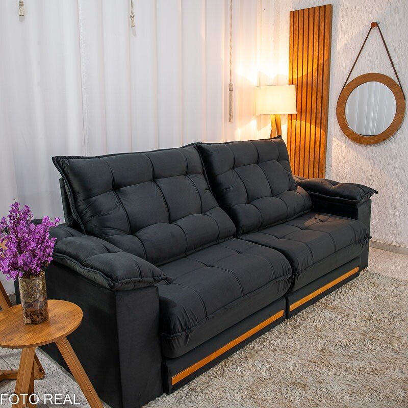 3{%%}Descrição#Benéficos das molas ensacadas{%%}Sofá Retrátil Reclinável Barcelona 2.30m Veludo Preto 322 – D33 e Molas Ensacadas