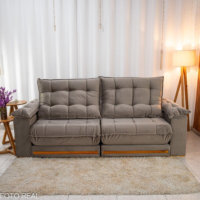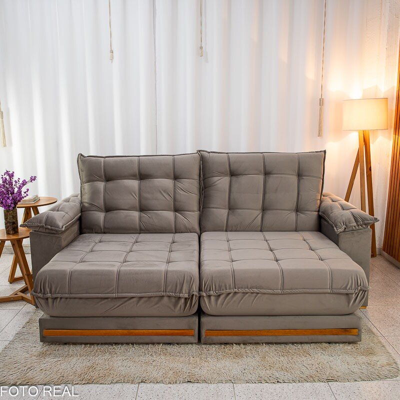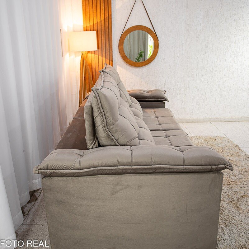 Sofá Retrátil Reclinável Barcelona 2.50m Veludo Cinza 319 – D33 e Molas Ensacadas