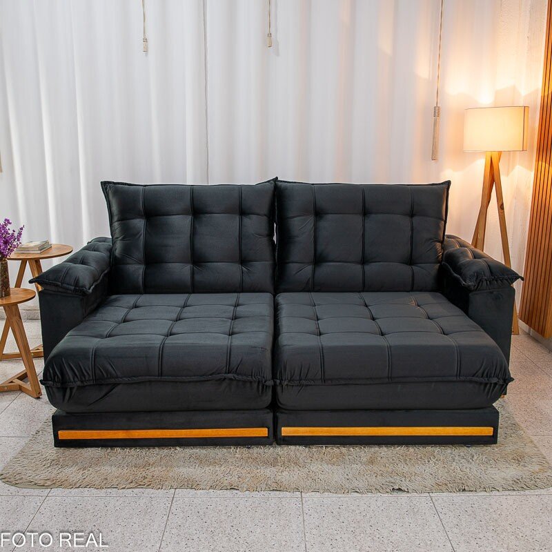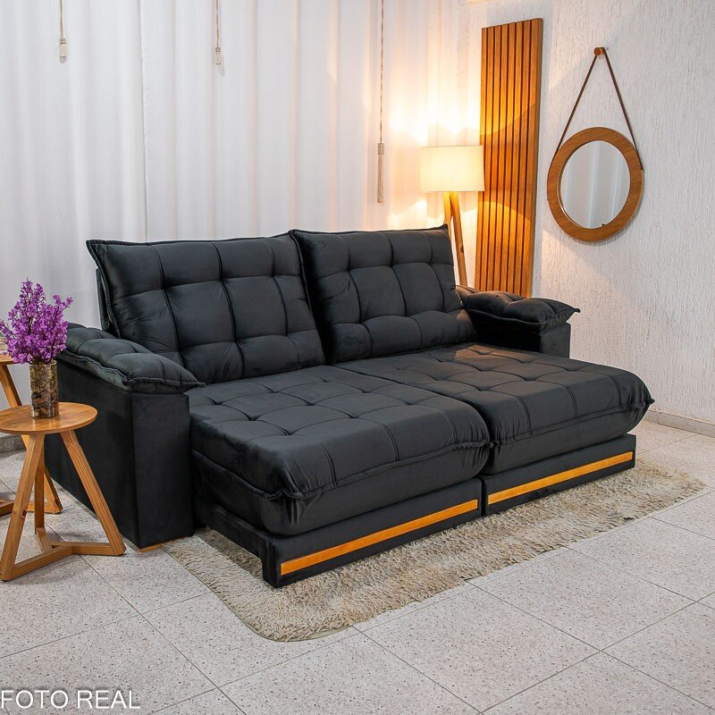 3{%%}Descrição#Benéficos das molas ensacadas{%%}Sofá Retrátil Reclinável Barcelona 2.50m Veludo Preto 322 – D33 e Molas Ensacadas