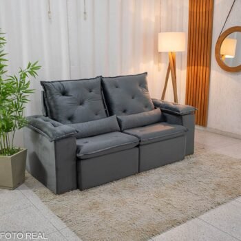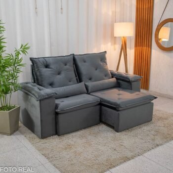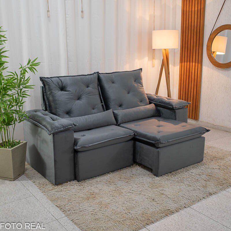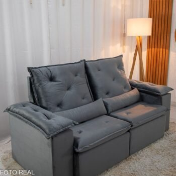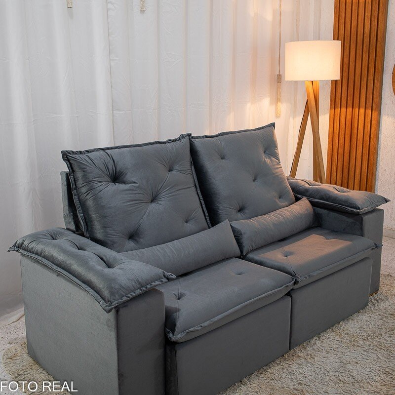 3{%%}Descrição{%%}Sofá Retrátil Reclinável City 1.95m Veludo Cinza – D28