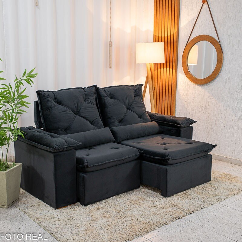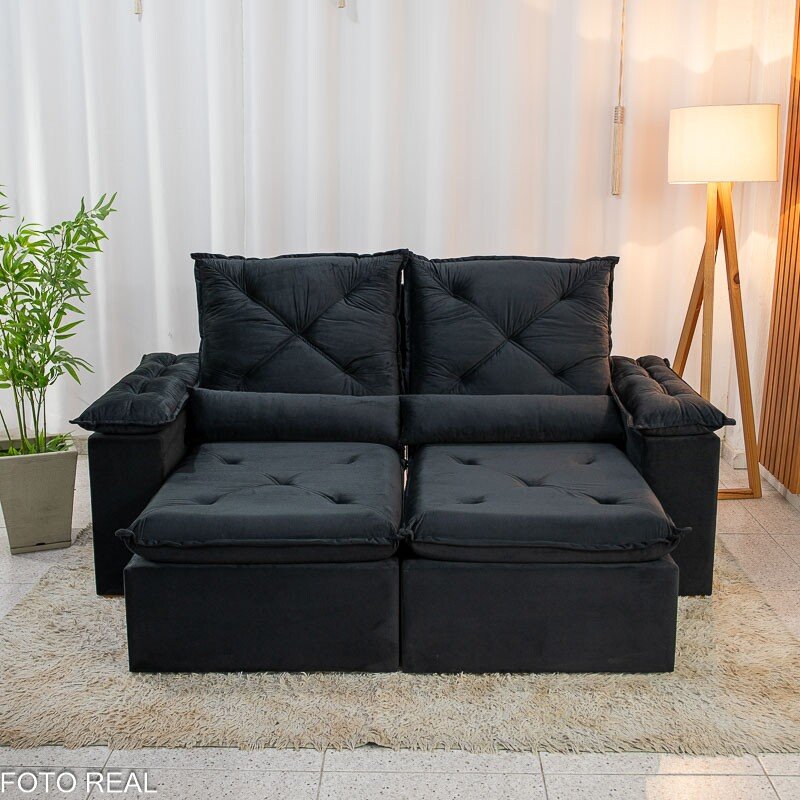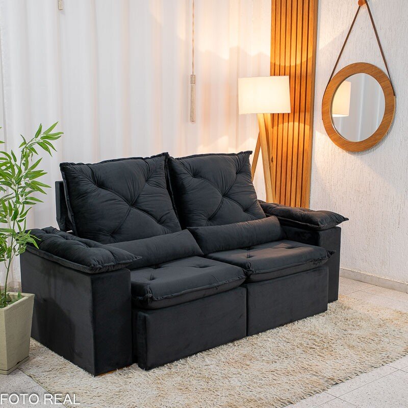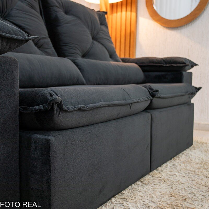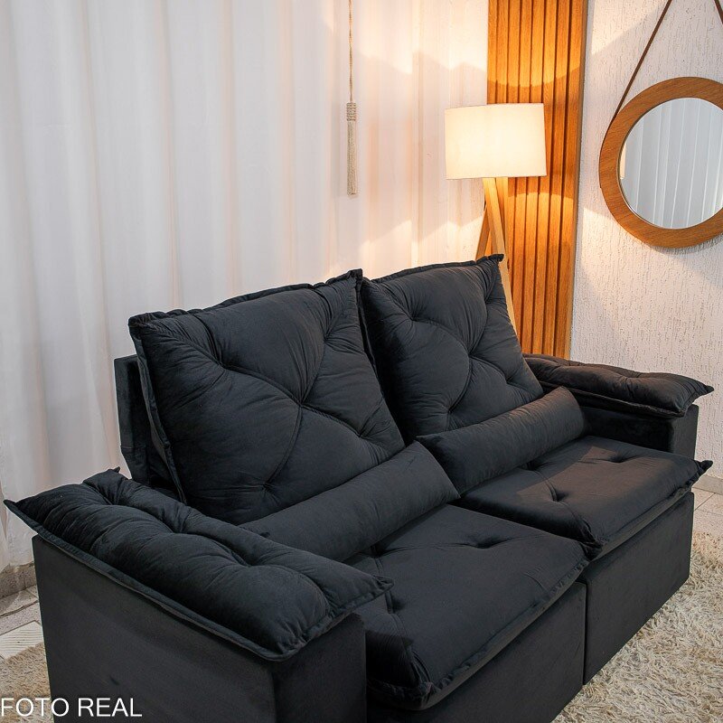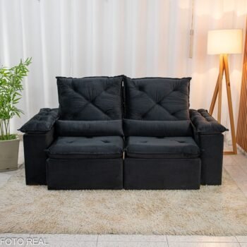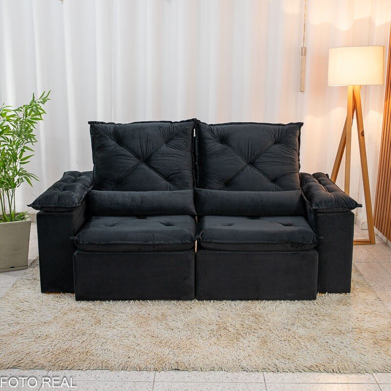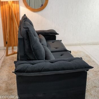 3{%%}Descrição{%%}Sofá Retrátil Reclinável City 1.95m Veludo Preto – D28