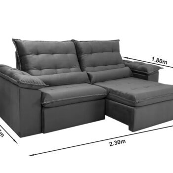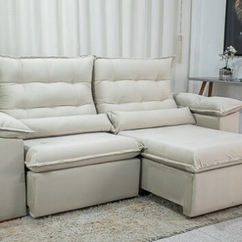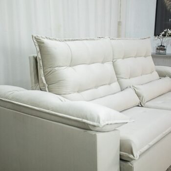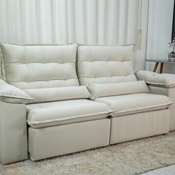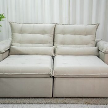 3{%%}Descrição{%%}Sofá Retrátil Reclinável Emanuelly 2.30m Veludo Bege 01 – D28 Soft
