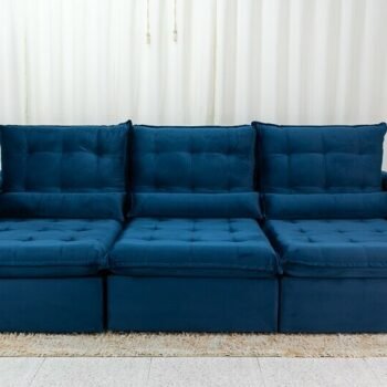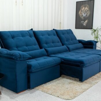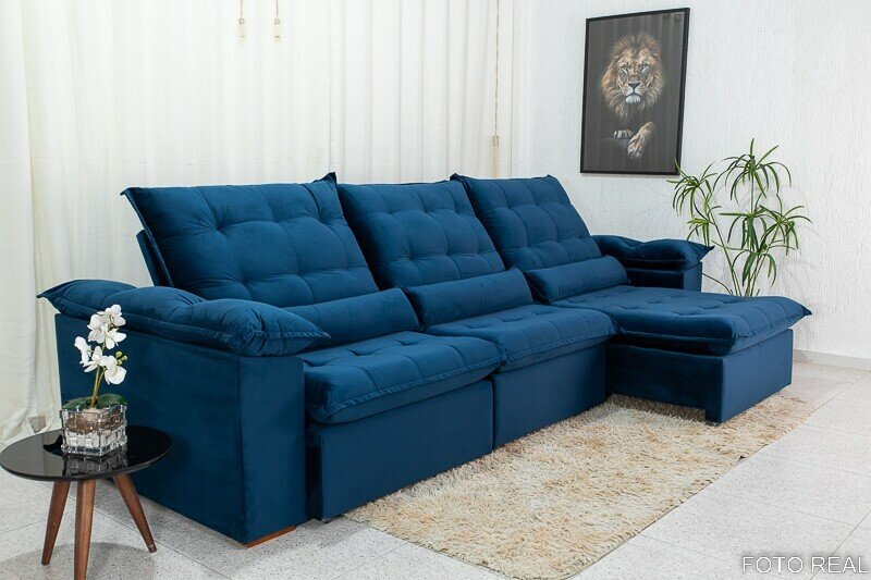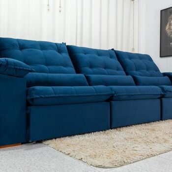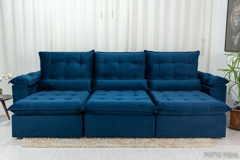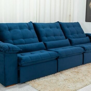 3{%%}Descrição{%%}Sofá Retrátil Reclinável Emanuelly 3.20m Veludo Azul 03 – D28 Soft