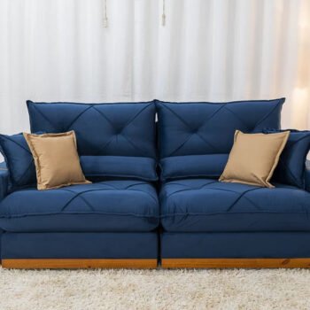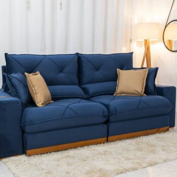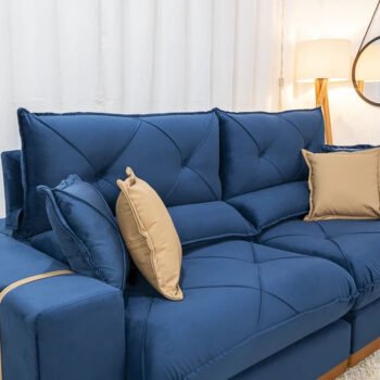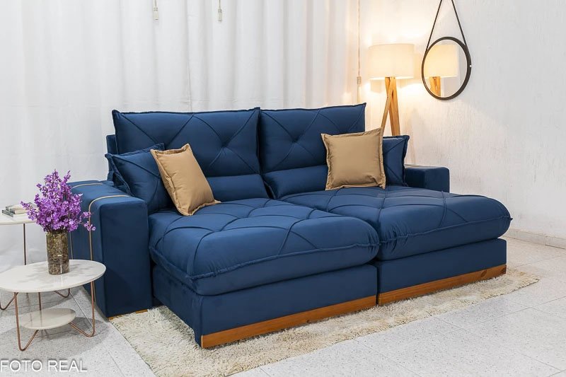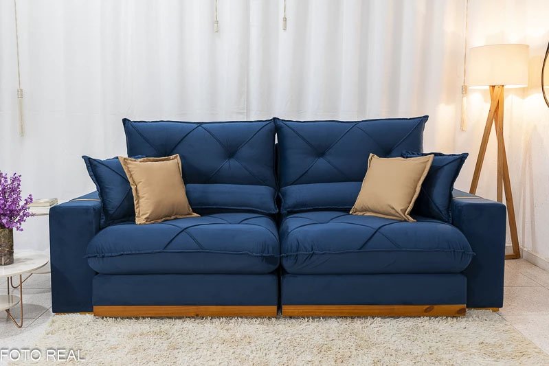 3{%%}Descrição#Benéficos das molas ensacadas{%%}Sofá Retrátil Reclinável Gran Bello 2.00m Veludo Azul – Molas Ensacadas