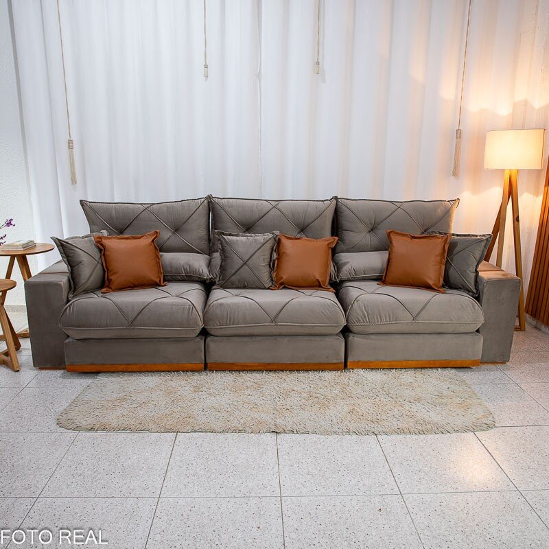 3{%%}Descrição#Benefícios das molas ensacadas{%%}Sofá Retrátil Reclinável Gran Bello 3.20m Veludo Capuccino – Molas Ensacadas