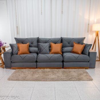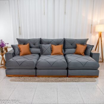 3{%%}Descrição#Benefícios das molas ensacadas{%%}Sofá Retrátil Reclinável Gran Bello 3.20m Veludo Cinza – Molas Ensacadas