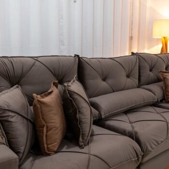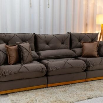 3{%%}Descrição#Benefícios das molas ensacadas{%%}Sofá Retrátil Reclinável Gran Bello 3.20m Veludo Marrom – Molas Ensacadas