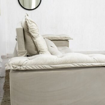 Atenção: Informamos que é normal haver uma abertura entre os módulos dos sofás retráteis. Essa abertura é necessária para evitar atrito entre os módulos durante o movimento de abrir e fechar, prevenindo o desgaste do tecido.