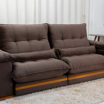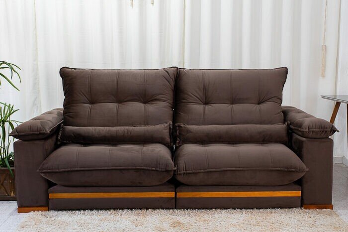 Sofá Retrátil Reclinável Ibis 2.50m Veludo Marrom 815 – D33 e Molas Ensacadas