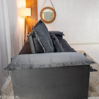 3{%%}Descrição{%%}Sofá Retrátil Reclinável Maldivas 2.30m Veludo Grafite A15 – D28 Pró Aditivada