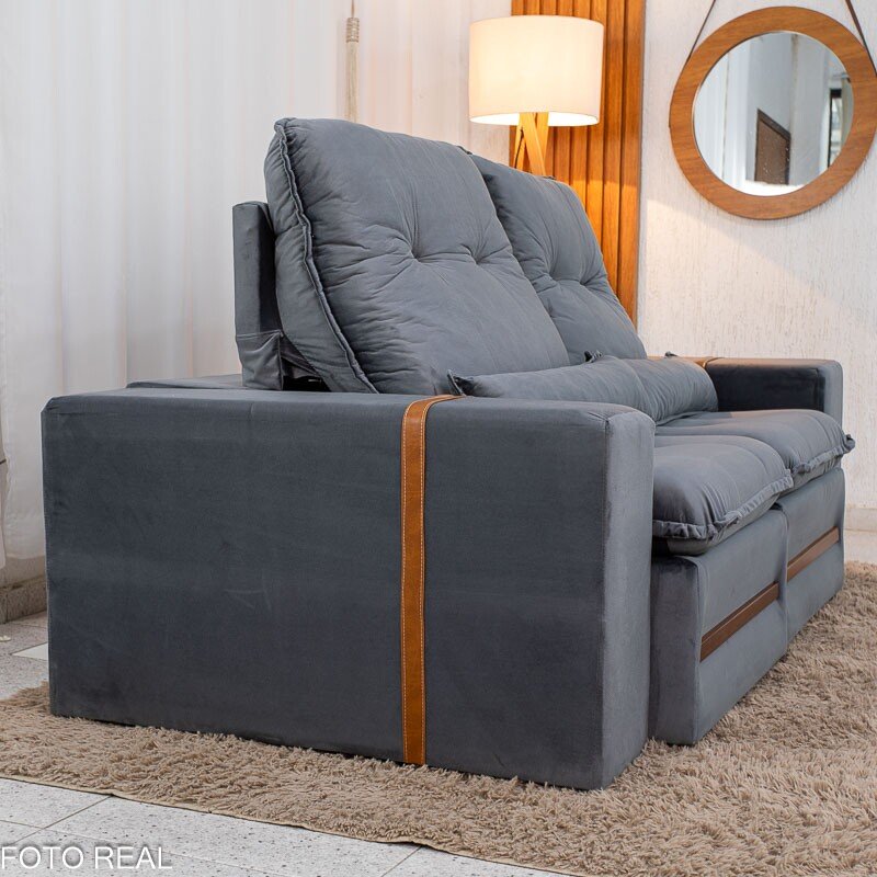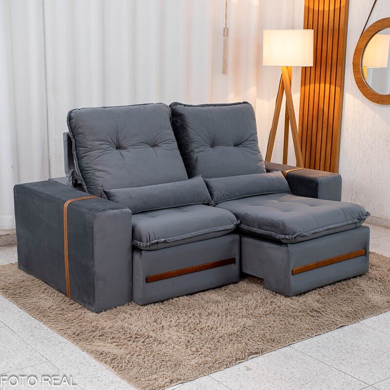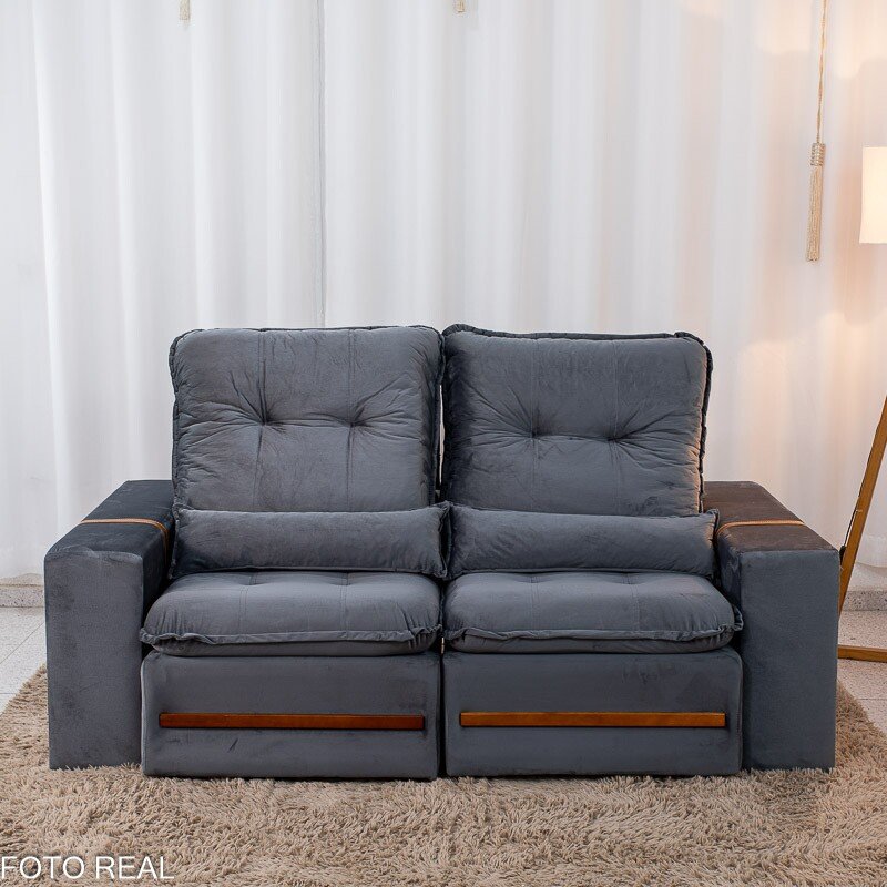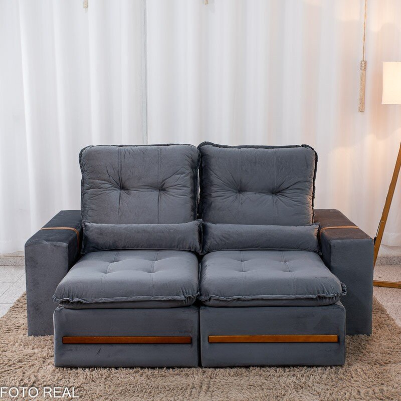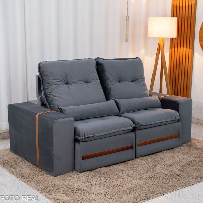 3{%%}Descrição{%%}Sofá Retrátil Reclinável Montreal 1.90m Veludo Cinza – D33