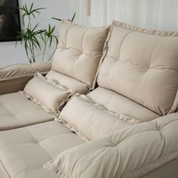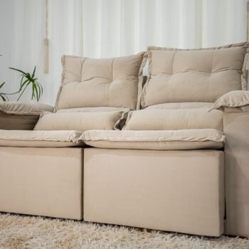Atenção: Informamos que é normal haver uma abertura entre os módulos dos sofás retráteis. Essa abertura é necessária para evitar atrito entre os módulos durante o movimento de abrir e fechar, prevenindo o desgaste do tecido.