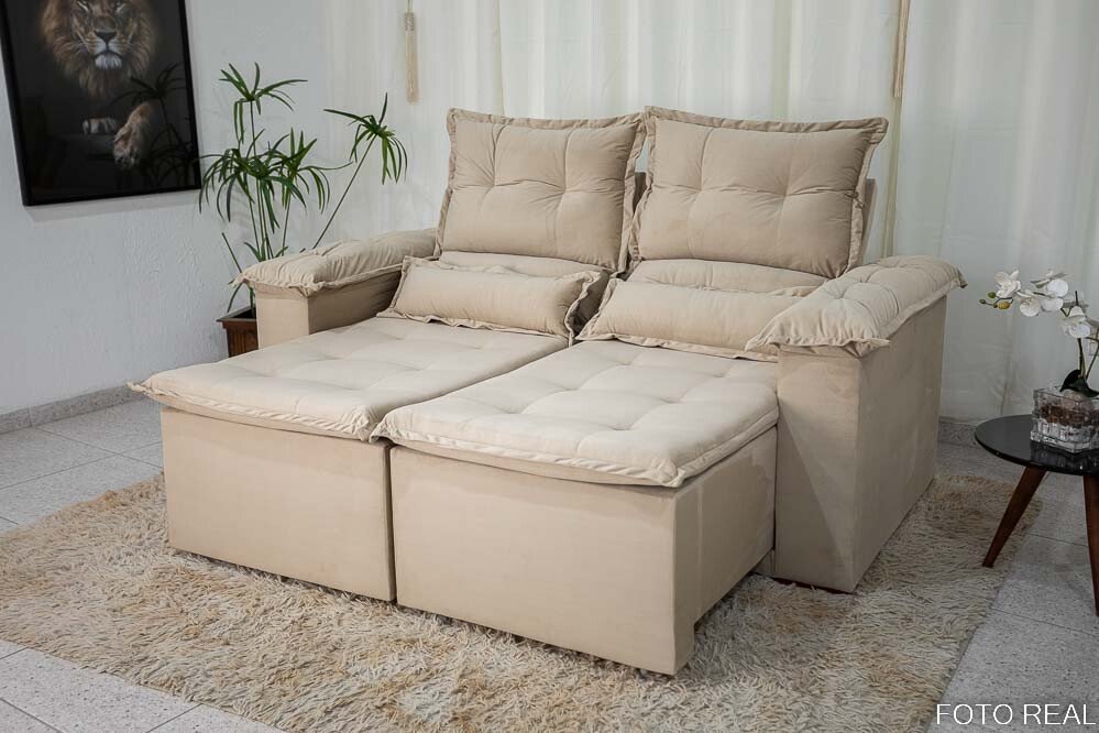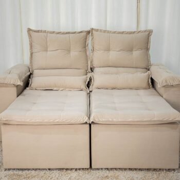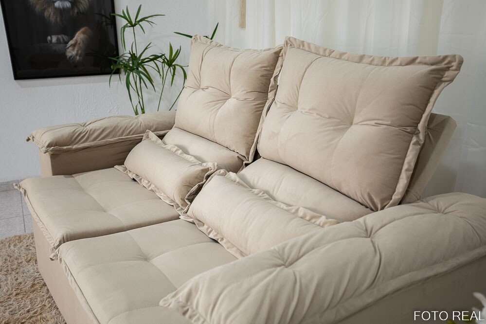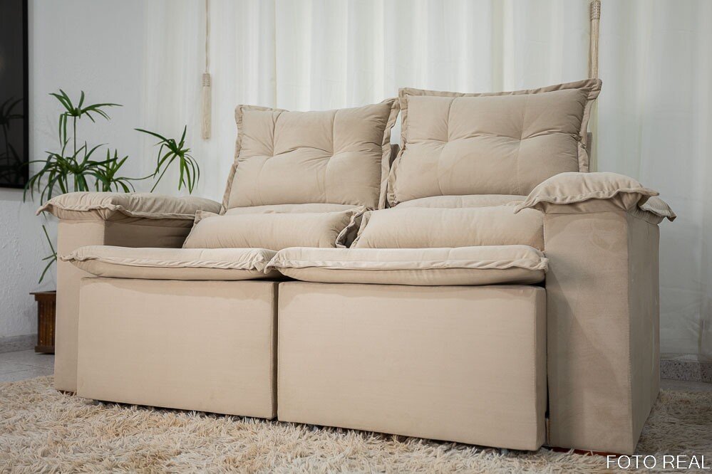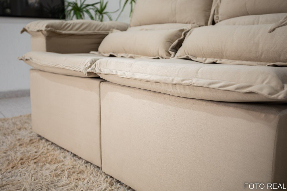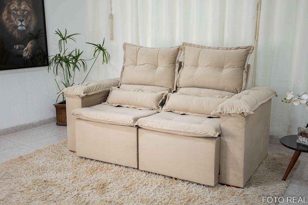 3{%%}Descrição{%%}Sofá Retrátil Reclinável Nicole 1.80m Veludo Bege A32