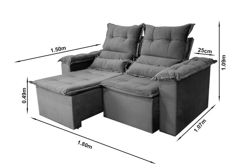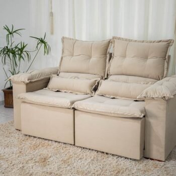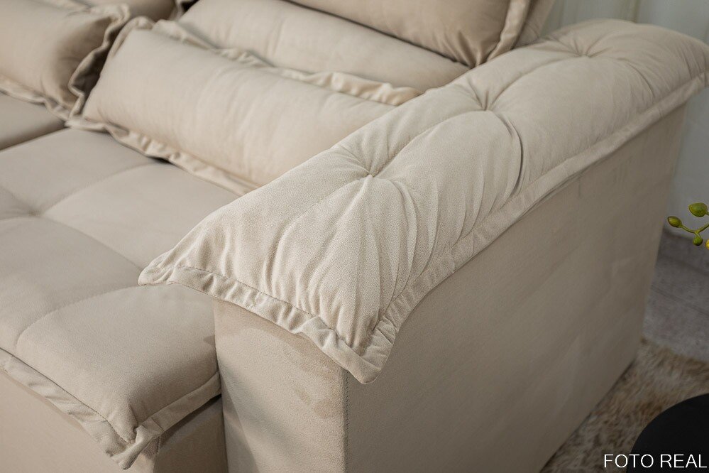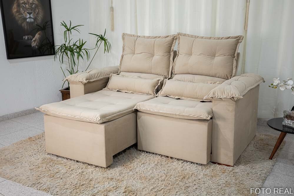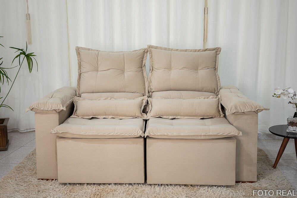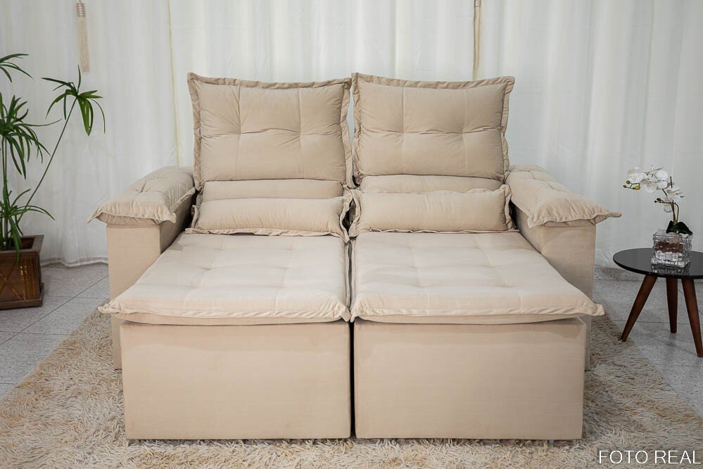 3{%%}Descrição{%%}Sofá Retrátil Reclinável Nicole 1.80m Veludo Bege A32