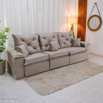Informamos que é normal haver uma abertura entre os módulos dos sofás retráteis. Essa abertura é necessária para evitar atrito entre os módulos durante o movimento de abrir e fechar, prevenindo o desgaste do tecido.