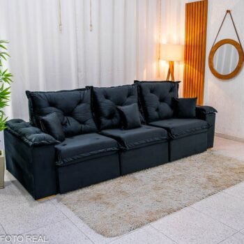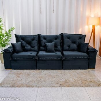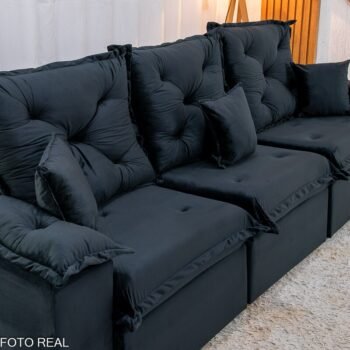 3{%%}Descrição{%%}O Sofá Retrátil Reclinável Porto Madri é a combinação perfeita entre design moderno e funcionalidade. Com 2.70 metros de largura, ele acomoda com conforto e ainda passa em portas de 70cm, facilitando na hora da entrega ou mudanças. Seu revestimento em veludo preto de toque super macio traz um charme especial ao ambiente e combina com diversos estilos de decoração.