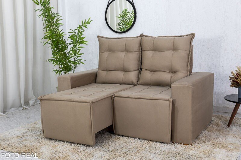 3{%%}Descrição{%%}Sofá Retrátil Reclinável Rafaela 1.60m Veludinho Bege B09