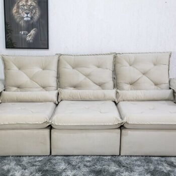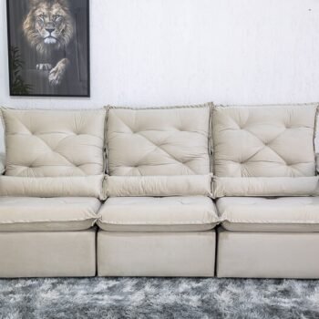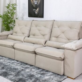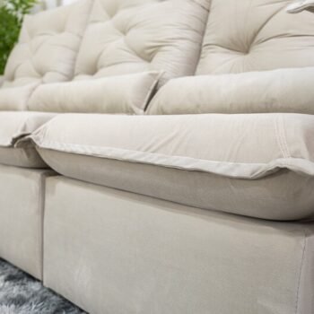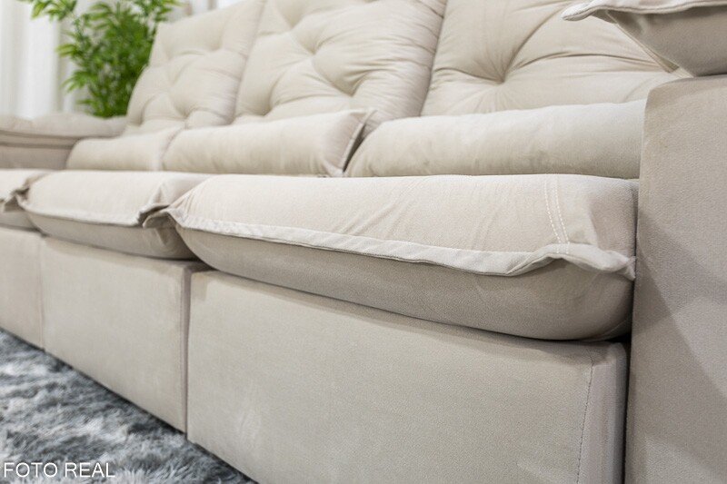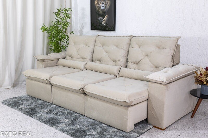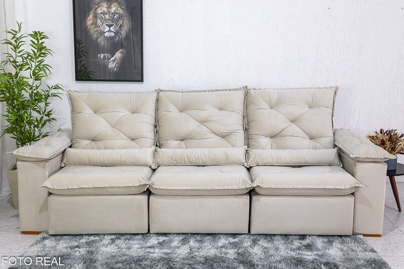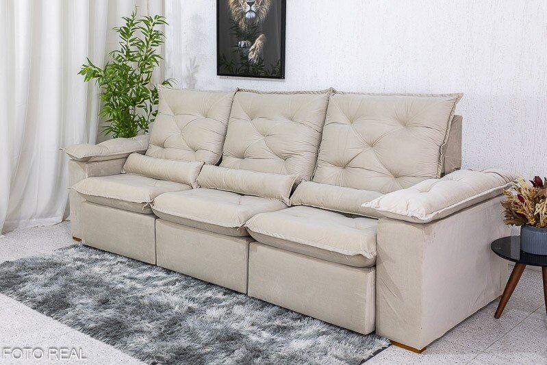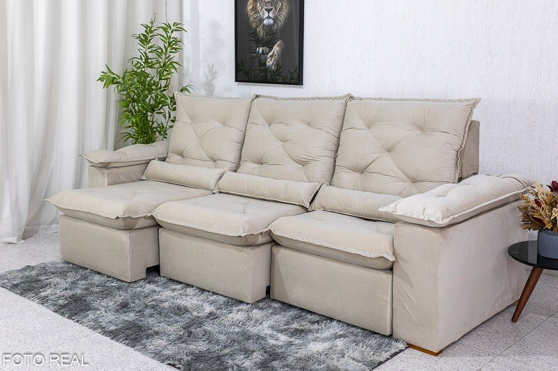 3{%%}Descrição{%%}Sofá Retrátil Reclinável Roma 2.70m Veludo Bege 01 – D28 Soft