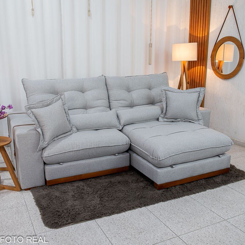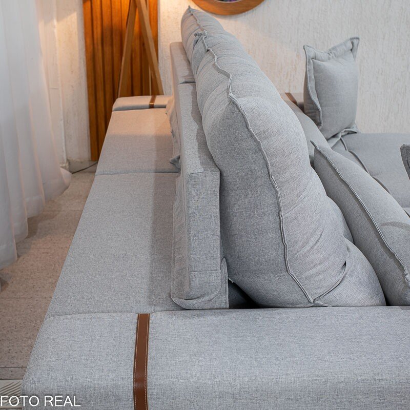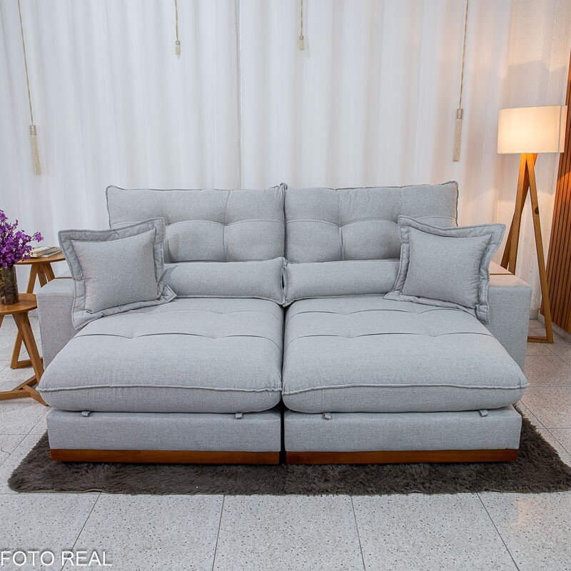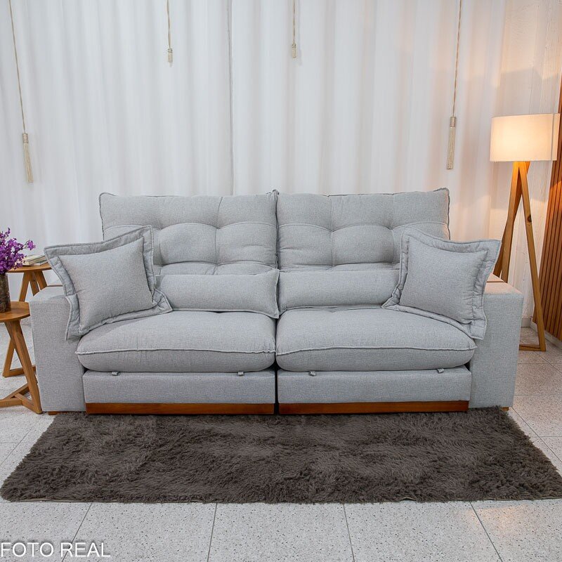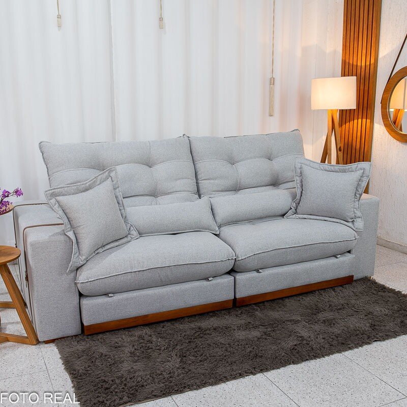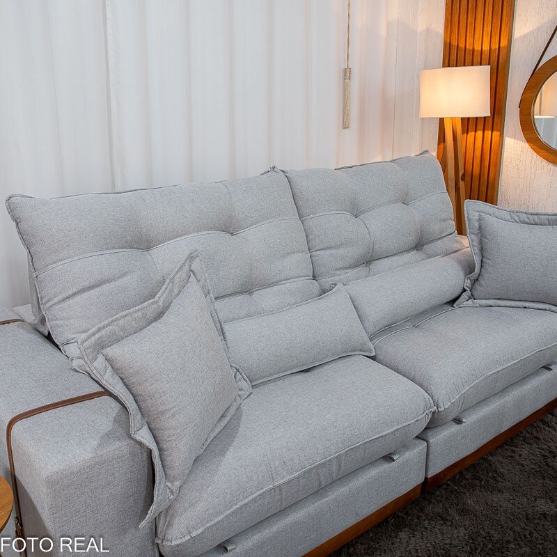3{%%}Descrição{%%}Sofá Retrátil Reclinável Toronto 2.50m Linho Cinza 2005 – Molas Ensacadas