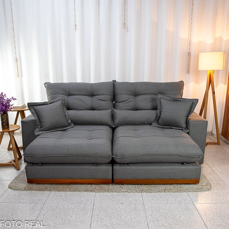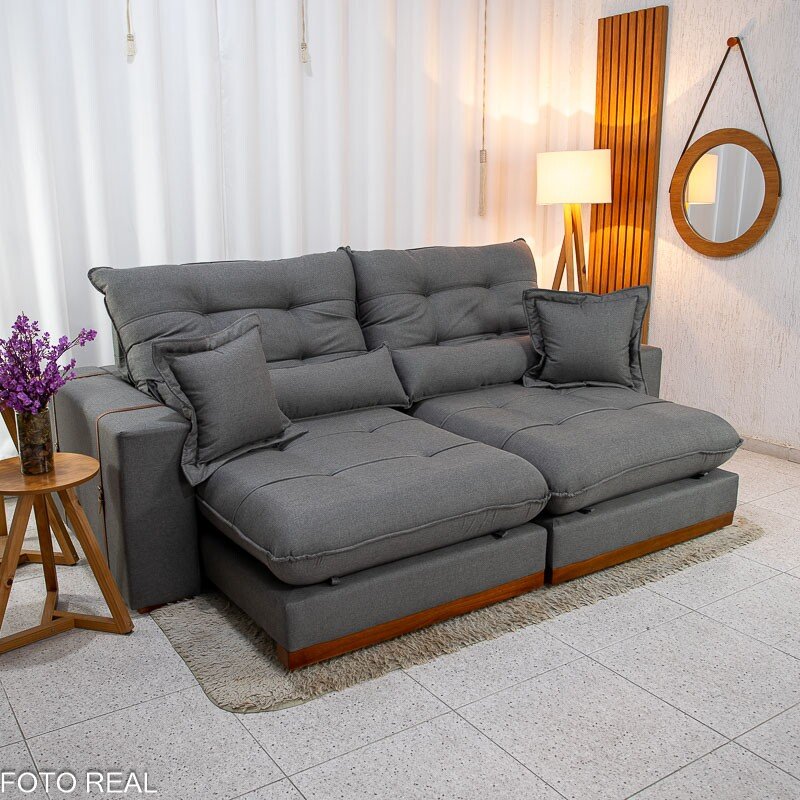 3{%%}Descrição{%%}Sofá Retrátil Reclinável Toronto 2.50m Linho Grafite 2008 – Molas Ensacadas