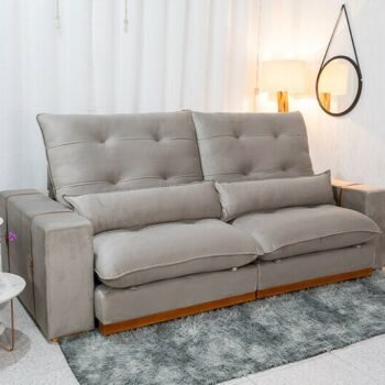 Sofá Retrátil Reclinável Toronto 2.50m Veludo Avelã 4052 – Molas Ensacadas