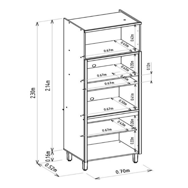 – Quatro portas de abrir 15 mm com dobradiças metálicas slow motion