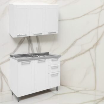Armário Aéreo 3 Portas 6009590 + Balcão 2 Gavetas 6015590 Múltipla + Tampo Pia Branco – BERTOLINI