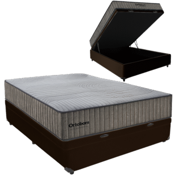 Colchão Casal Dream Soft + Base Box Simples Corino Marrom – ORTOBOM + ALTO NÍVEL CAMAS E COLCHÕES