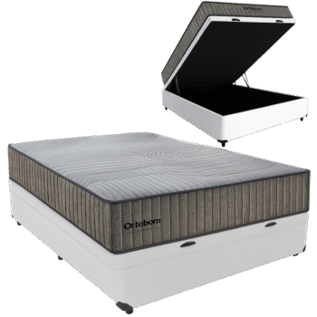 Colchão Casal ISO Dupla Face + Base Box Simples Corino Preto – ORTOBOM + ALTO NÍVEL CAMAS E COLCHÕES